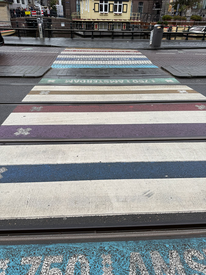 Below: Amsterdam is where I feel freedom as soon as I get off the train. So many different people living together in peace. OK, I know that bad things happen there as well, but the majority lives happily side by side. This rainbow zebra crossing is a symbol of that. Mind you, the colours could (should?) have been a bit brighter.
