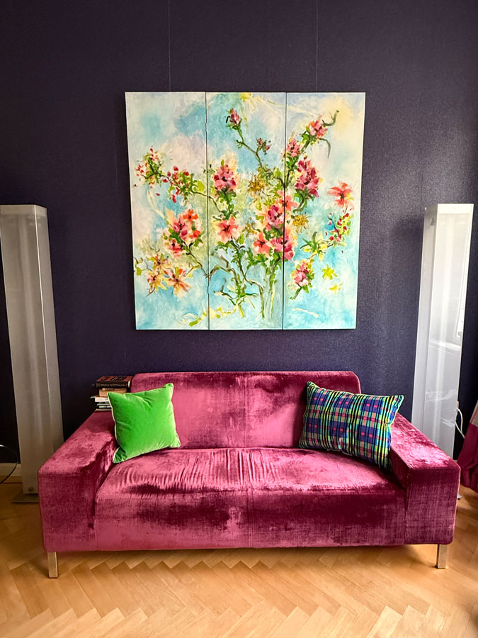 Below: The multi-coloured cushion on the right is the one I (sorry…we…) bought.