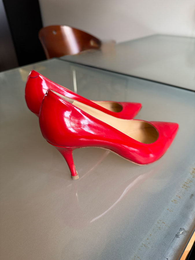 Below: I wore my red patent leather pumps to the hairdresser. I was in a hurry and thought I’d try them again, after not having worn them for several years. MISTAKE. Straight after coming home, I took them off and will never ever put them on again.